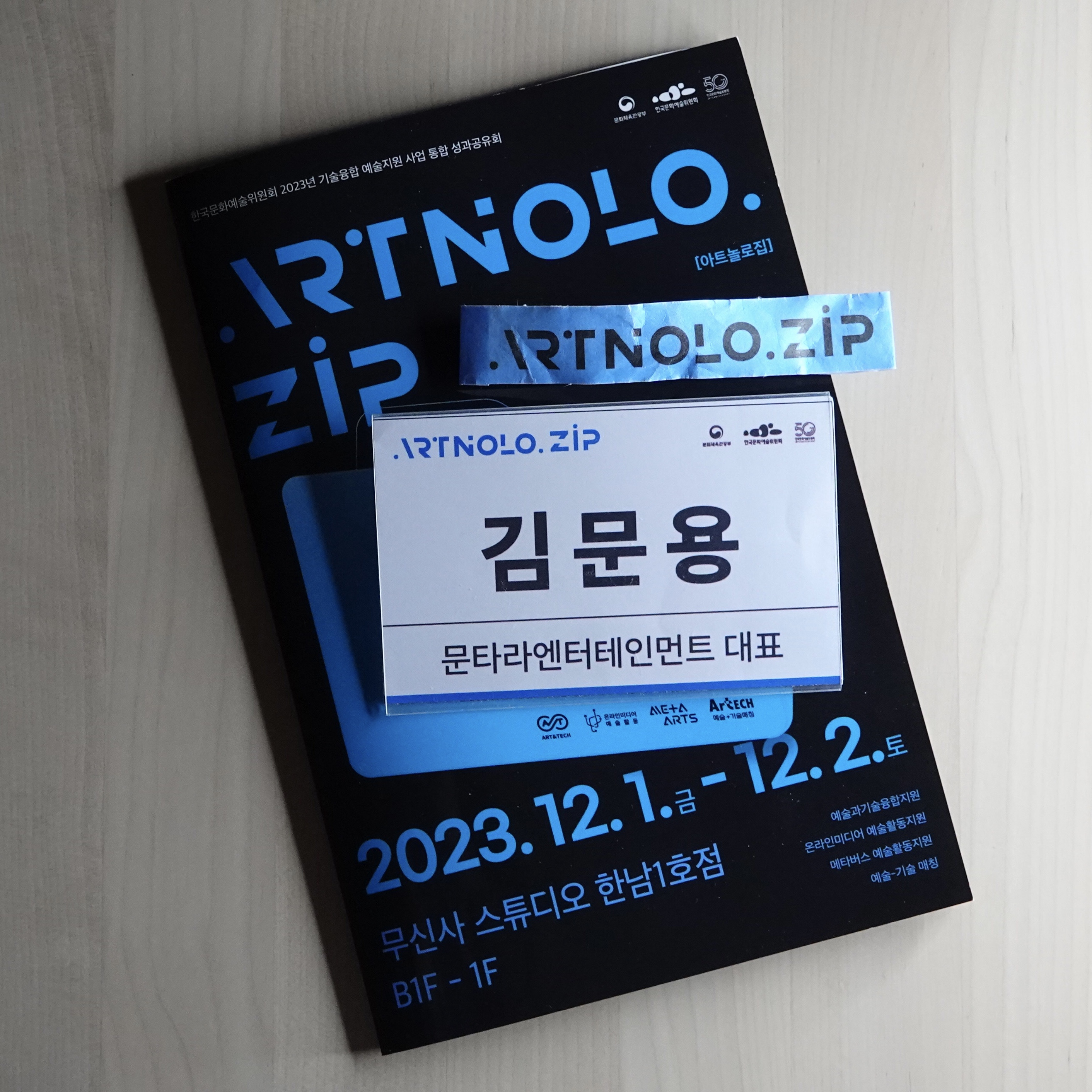 지난 12월 1~2일, '2023년 기술융합 예술지원 사업 통합 성과공유회 ARTNOLO.ZIP[아트놀로집]'이 서울 용산구 무신사 스튜디오 한남1호점에서 열렸습니다. 이 자리에는 국내외 예술계 인사를 비롯해 기업 관계자, 예비 예술인 등 350여 명이 참석하였다고 합니다.