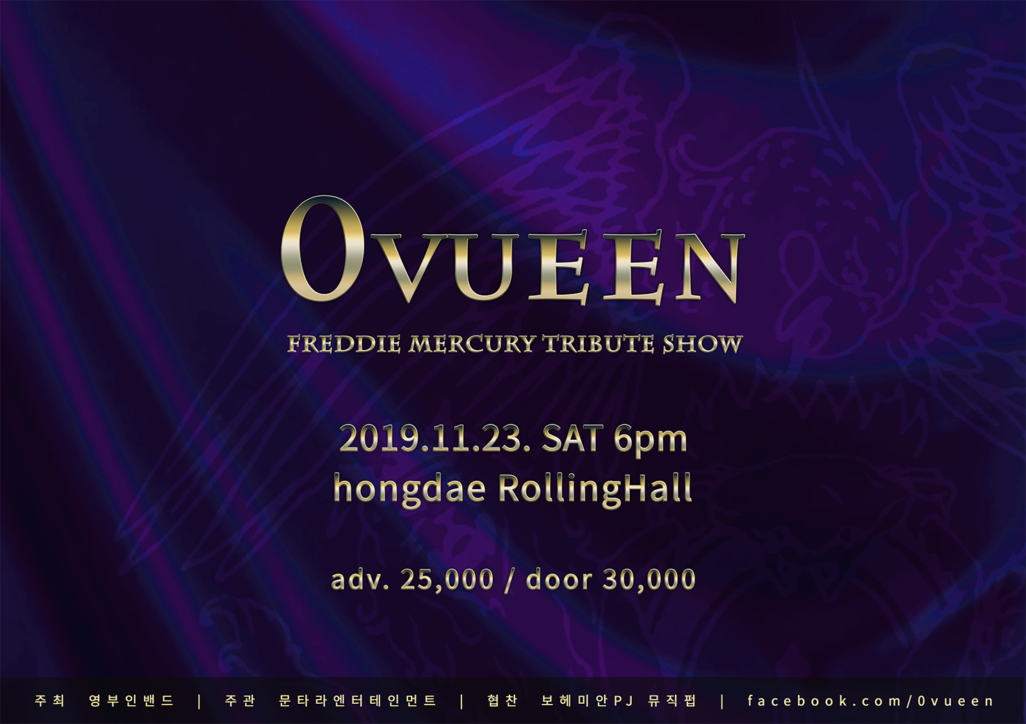 2019년 11월 23일 6시 홍대 롤링홀에서 퀸 트리뷰트 밴드 영부인(0vueen) 공연이 있습니다.
