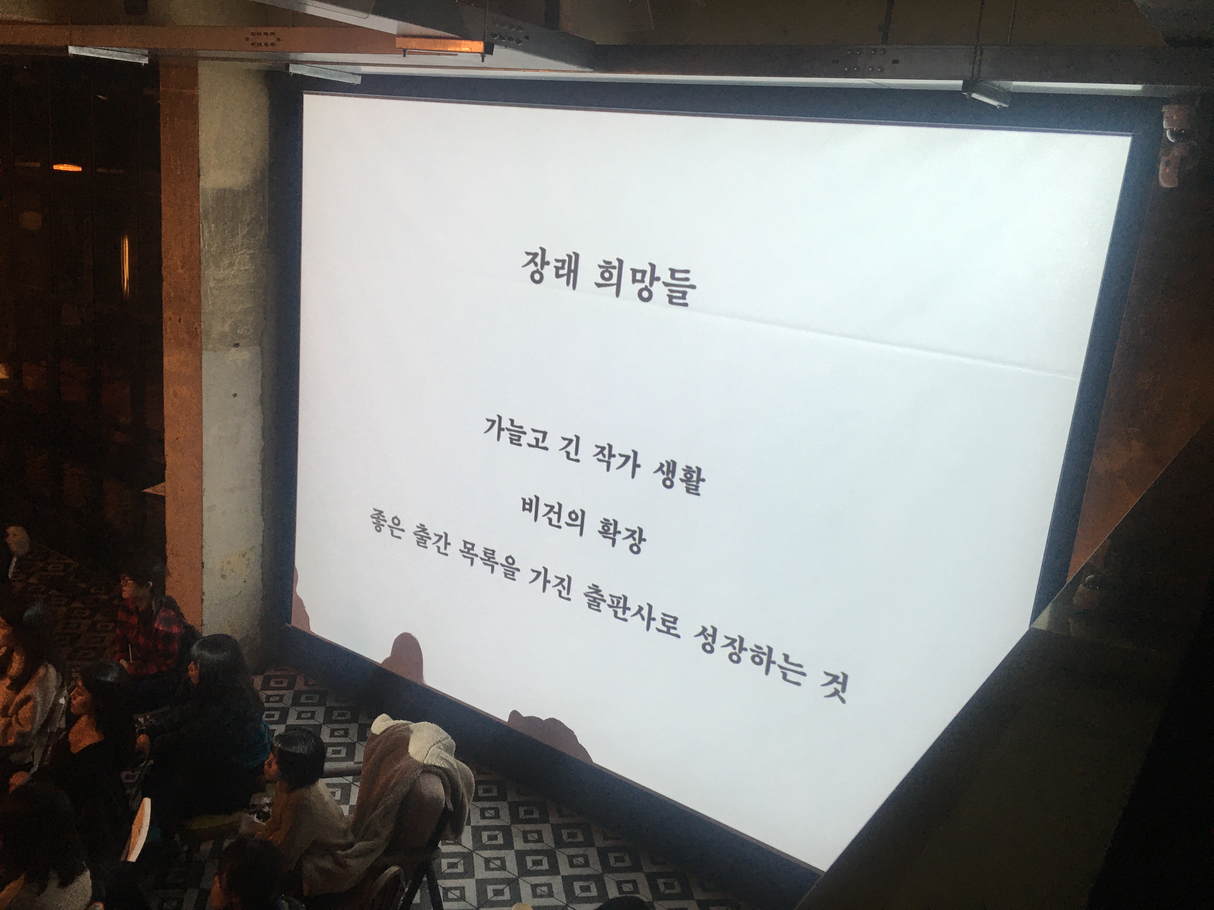 얼마 전 연남장에서 열린 이슬아 작가의 북콘서트에 참석했는데, 장래희망 중 ‘가늘고 긴 작가생활’ 항목이 있어 저의 눈길을 끌었습니다.