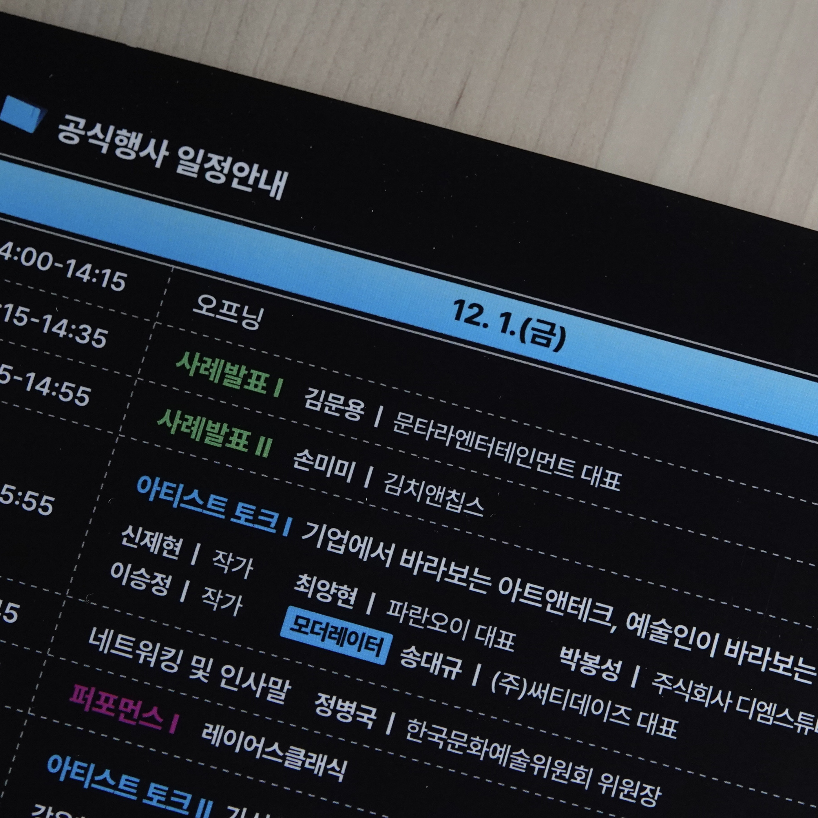 지난 12월 1~2일, '2023년 기술융합 예술지원 사업 통합 성과공유회 ARTNOLO.ZIP[아트놀로집]'이 서울 용산구 무신사 스튜디오 한남1호점에서 열렸습니다. 이 자리에는 국내외 예술계 인사를 비롯해 기업 관계자, 예비 예술인 등 350여 명이 참석하였다고 합니다.